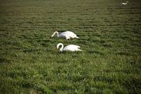 Twee zwanen op een weiland in Emsland van Bianca Meyering Fotos - BMF