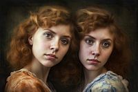 Deze foto viert de schoonheid van tweelingen uit verschillende culturen. Een betoverend portret van fascinerende tweelingvrouwen belichaamt de diversiteit en overeenkomsten van twee zielen. De afbeelding is gemaakt met behulp van kunstmatige intelligentie en geoptimaliseerd met behulp van beeldbewerkingsprogramma's.