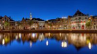 Deel van een tweeluik. Een klassiek uitzicht over het Spaarne op het centrum van Haarlem, met onder meer de Waag en de Grote Kerk. Genomen op een late avond, tijdens het blauwe uurtje.