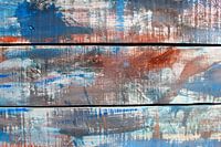 Abstract beschilderd steigerhout. Ruwe houten planken, steigerplanken met houtnerven, nerven, houtstructuren en noesten van een verlaten vissershuisje op een steiger langs de Atlantische Oceaan, Alentejo, Portugal.