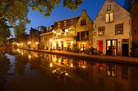 Twijnstraat aan de Werf aan de Oudegracht in Utrecht. In het midden van de foto zie je het restaurant De Heeren van Leeuw.