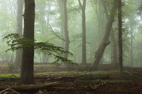 Een prachtige mistige lente ochtend in het Nationaal park Utrechtse Heuvelrug bij de grafheuvels.