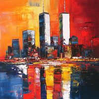 Twin Towers new york abstract kleurrijk schilderij die een luxe toevoeging zal zijn aan elke ruimte. Met zijn unieke en stijlvolle uitstraling is het een ware eyecatcher. De schitterende kleuren en het bijzondere ontwerp maken dit kunstwerk 100% uniek en origineel. Het is de perfecte fotoprint om je interieur helemaal af te maken.