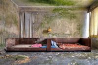 A photo of a room in an abandoned hotel. Design vintage and retro.