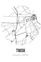 Zwart-witte landkaart, stratenplan of plattegrond van Twisk. Twisk is gelegen in de gemeente Medemblik, provincie Noord-Holland. Op de stadskaart zijn alle openbare wegen in Twisk opgenomen. Verder is de kaart voorzien van de coördinaten van het centrum van Twisk.