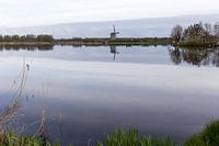Twiskemolen aan het water in natuurgebied het Twiske in Amsterdam