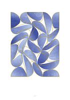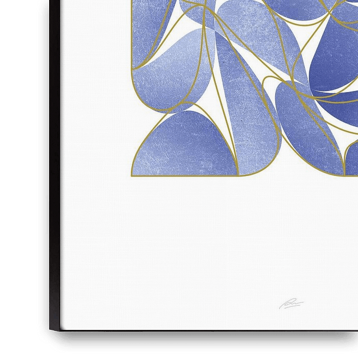 De Twisted Flow serie toont een verzameling organische vormen die zijn ontstaan uit geometrische vormen. De ontwerpen tonen een blauwe achtergrondvulling met daarbovenop een gouden lijnontwerp.