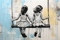 Two Girls on a Swing | Banksy Style Urban Art