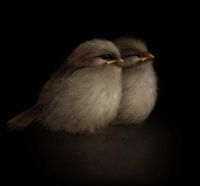 Twee jonge mussen , net uit het nest.