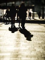 De laagstaande ochtendzon werpt lange schaduwen in de stationshal van Arnhem. Doordat het nog vroeg is heeft het licht een "gouden" kleur. Fotografen noemen dit ook wel het gouden uurtje. Het licht zorgde in ieder geval voor een scherp contrast en mooie donkere schaduwen. Door een speciale lens te gebruiken, een Lensbaby, was het mogelijk om op de schaduwen scherp te stellen en de rest van de omgeving niet gefocust te laten. Het leverde deze foto op uit de serie Schaduwen.