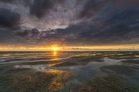 Deze foto is gemaakt op de Waddenzee nabij St. Jacobiparochie (Friesland, Nederland). De zon ging schitterend onder. Daarnaast was het ook eb, zodat er mooie structuren in de bodem zichtbaar werden. De Waddenzee is een schitterend gebied!