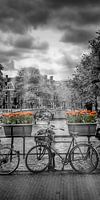 De Herengracht is het binnenste van de drie behoren tot de grachtengordel kanalen. Een typisch panoramisch uitzicht over Amsterdam met vele fietsen. stralen van de zon verlichten 'urban scene.