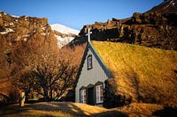 In een klein dorpje aan de IJslandse rondweg staat dit kleine kerkje. Het dak is op een typisch IJslandse manier bedekt - met gras en mos.