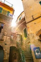 Chinque Terre bestaat uit 5 sprookjesachtige dorpjes. In dit dorpje kwam de zon heel mooi precies langs de gebouwen. Samen met de groene trappen zorgt dit voor een typisch Italiaans beeld.
