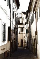 Het warm en stil op straat in Italië. De mensen zitten te eten en rusten uit in de koelte. Deze straat is in vele Italiaanse steden te vinden