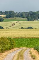 Typisch Zuid-Limburgs landschap in de buurt van Simpelveld met zijn lijnenspel en graanvelden bijna klaar voor de oogst