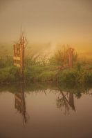 Typisch hekwerk in de polder van de Alblasserwaard. De warme gloed van het ochtendzonnetje tovert het polderlandschap om in een sfeervol plaatje.