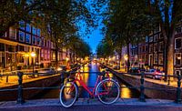 Typisch hollands Een rode fiets aan de leidse gracht in Amsterdam