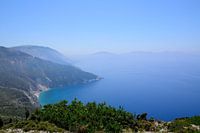 Rondrijden op het eiland Kefalonia in Griekenland biedt prachtige uitzichten. Dit wazige, bijna mystieke uitzicht is heel typerend.