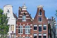 Drie verschillende stijlen gevels van Amsterdamse huizen. Deze foto is genomen op de hoek van de Keizersgracht in Amsterdam.
