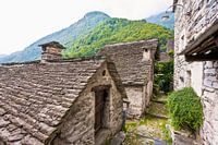 Typische stenen huizen in Corippo in het Verzasca-dal, Ticino, Zwitserland.
