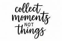 Zwarte scriptletters met speelse variatie in lijndikte vormen de zin ‘collect moments not things’ op een helder witte achtergrond. De balans tussen volle penseelstreken en ruime witruimte zorgt voor rust en focus. De diagonale flow van de woorden geeft de compositie ritme, terwijl het sterke zwart-wit contrast de boodschap direct…