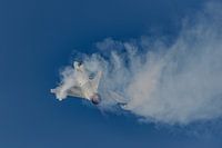De piloot van deze Dassault Mirage 2000-9 van de luchtmacht van de Verenigde Arabische Emiraten laat zijn vliegkunsten zien tijdens de Bahrain International Air Show van 2016.