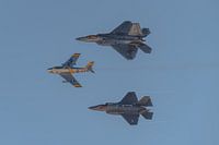 US Air Force Heritage Flight bestaande uit een F-86 Sabre, F-35 Lightning II en F-22 Raptor.