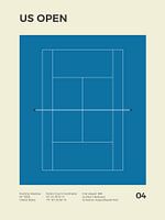 Deze print maakt deel uit van mijn serie van Grandslam tennistoernooien. De US Open is het vierde Grandslam van het jaar. Vandaar dat deze ook als vier genummerd is. Onder de bekende blauwe hardcourt tennisbaan het adres, coordinaten van Arthur Ashe Stadium (oftewel Centre Court), en wat info over het toernooi.