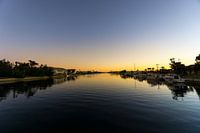 Over ‘USA, Florida, Zonsondergang achter water van grote rivier met boten en huizen’ van adventure-photos