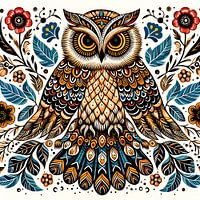Uil abstract in retrokleuren, blauw, oranje, groen