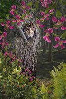 Fantasie-beeld met de bosrank ofwel Clematis groeiend om de boomstam.