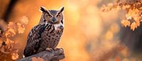 Een majestueuze blikvanger met de mystieke uitstraling van een uil, omgeven door warme herfsttinten. Zijn doordringende ogen en gevederde verenkleed stralen wijsheid en rust uit. Dit kunstwerk geeft elke **woonkamer** een ontspannen, maar stijlvolle sfeer en nodigt uit om te dromen. Perfect voor iedereen die van de natuur houdt!