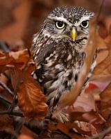 Uil in herst gekleurde bladeren die in de bewerking iets steviger is aangezet. Hierdoor komen de donker bruine kleuren mooi tot hun recht.