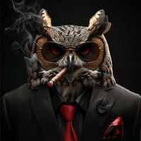 Uil met sigaar en zonnebril schilderij die een prachtige luxe toevoeging zal zijn aan elke ruimte. Met zijn unieke en stijlvolle uitstraling is het een ware eyecatcher. De schitterende kleuren en het bijzondere ontwerp maken dit kunstwerk 100% uniek en origineel. Het is de perfecte fotoprint om je interieur helemaal af te maken.