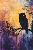 Dit schilderij combineert mysterie en schoonheid met een silhouet van een uil die elegant op een sierlijke tak zit, omlijst door een prachtige achtergrond van warme en koele tinten. De kleuren van de zonsondergang vloeien samen in abstracte patronen, waardoor dit kunstwerk een dynamische en opvallende toevoeging vormt aan elke ruimte. De gedetailleerde tak en de gloed van het licht voegen een gevoel van diepte toe aan dit unieke ontwerp. Perfect voor liefhebbers van natuur en abstracte kunst. Ideaal voor een slaapkamer of kantoor om een serene en intrigerende sfeer te creëren.