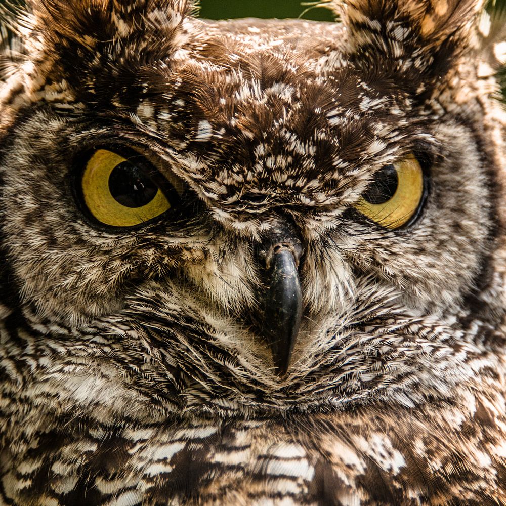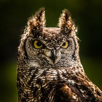 Uil tijdens training waardoor de oortjes alert rechtovereind staan, wachtend op een beloning