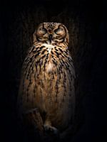 kunstwerk van een uil, Oehoe, met de ideale rustgevende Zen uitstraling. Lekker dutten in de boom.