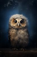 Dit portret van een jonge uil is een prachtig voorbeeld van digitale kunst die een zeldzame mix van tederheid en wijsheid uitstraalt. De uil, met zijn grote, doordringende en expressieve oranje ogen, kijkt direct naar de toeschouwer, wat een sterke en ontroerende verbinding creëert. De zachte, donzige veren zijn met buitengewone details…