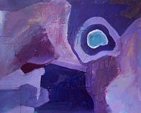 Het is abstract maar ik zie een uil met een duidelijk oog. Het oog dat waakt en de kijker beschermt. Een prachtig werk in lila en paarse tinten. Spontaan ontstaan door over oude werken heen te schilderen waardoor een gelaagdheid in het schilderij is ontstaan. Hier als re-productie te bestellen bij Werk aan de Muur en Art Heroes.