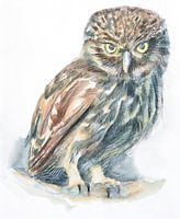 Aquarel op papier. De indringende blik in de ogen van dit uiltje vind ik fascinerend. Uilen kunnen sowieso goed zien, maar wanneer ze je recht aankijken word je met je neus op de feiten gedrukt: deze schoonheid is een roofdier!