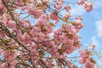 Lentestemming met uitbundig bloeiende Prunus Serrulata (Japanse kers ) in Oxfordshire, Engeland, Verenigd Koninkrijk, Europa.