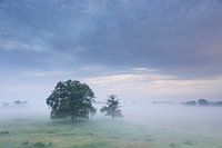 Ochtendstemming op de Elbe, Biosfeerreservaat van het Elbe-rivierenlandschap, Nedersaksen, Duitsland