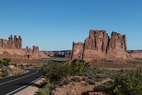 Deze rotsen zijn op een bijzondere manier uitgesleten. Links achter lijken drie mensjes de grote rotsblok voorin in de gaten te houden.
