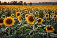 Uitgestrekt zonnebloemveld bij zonsondergang van Art & Soul Creations