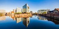 Panorama Hoofdkantoor en uitgeverij van Spiegel-Verlag en de Deichtorhallen in het ochtendlicht aan de Brooktorkai / Ericus in Oberhafen in HafenCity, Hamburg, Duitsland