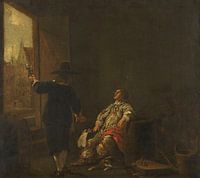 Uithangbord van een wijnhandelaar: het proeven van wijn (ene kant); het kuipen der wijnvaten (andere kant), Aelbert Cuyp