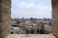 Bezoek aan Torres de Serranos in de stad Valencia, Spanje. Bovenop dit historische gebouw kan de stad in alle richtingen worden bekeken.