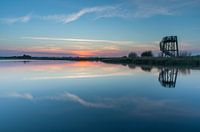Uitkijktoren tijdens zonsondergang (Zwaneveldsgat- Groningen)