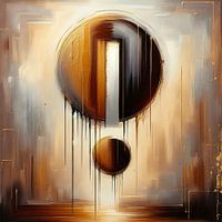 Dit abstracte olieverfwerk combineert diepe aardetinten met sprankelende gouden accenten en legt de nadruk op een krachtig uitroepteken. Het symbool straalt energie en intensiteit uit, een visuele uitdrukking van kracht en overtuiging. Ideaal voor wie een statement wil maken in hun interieur.